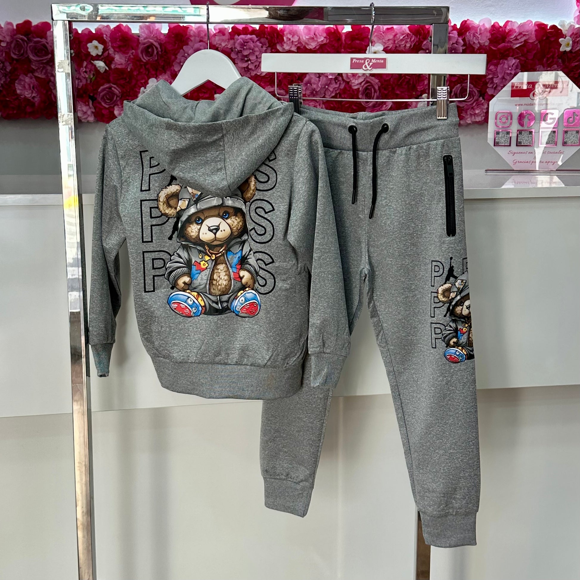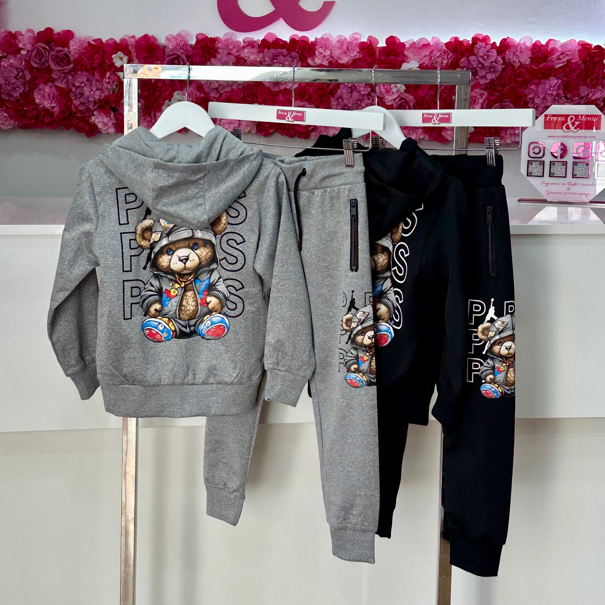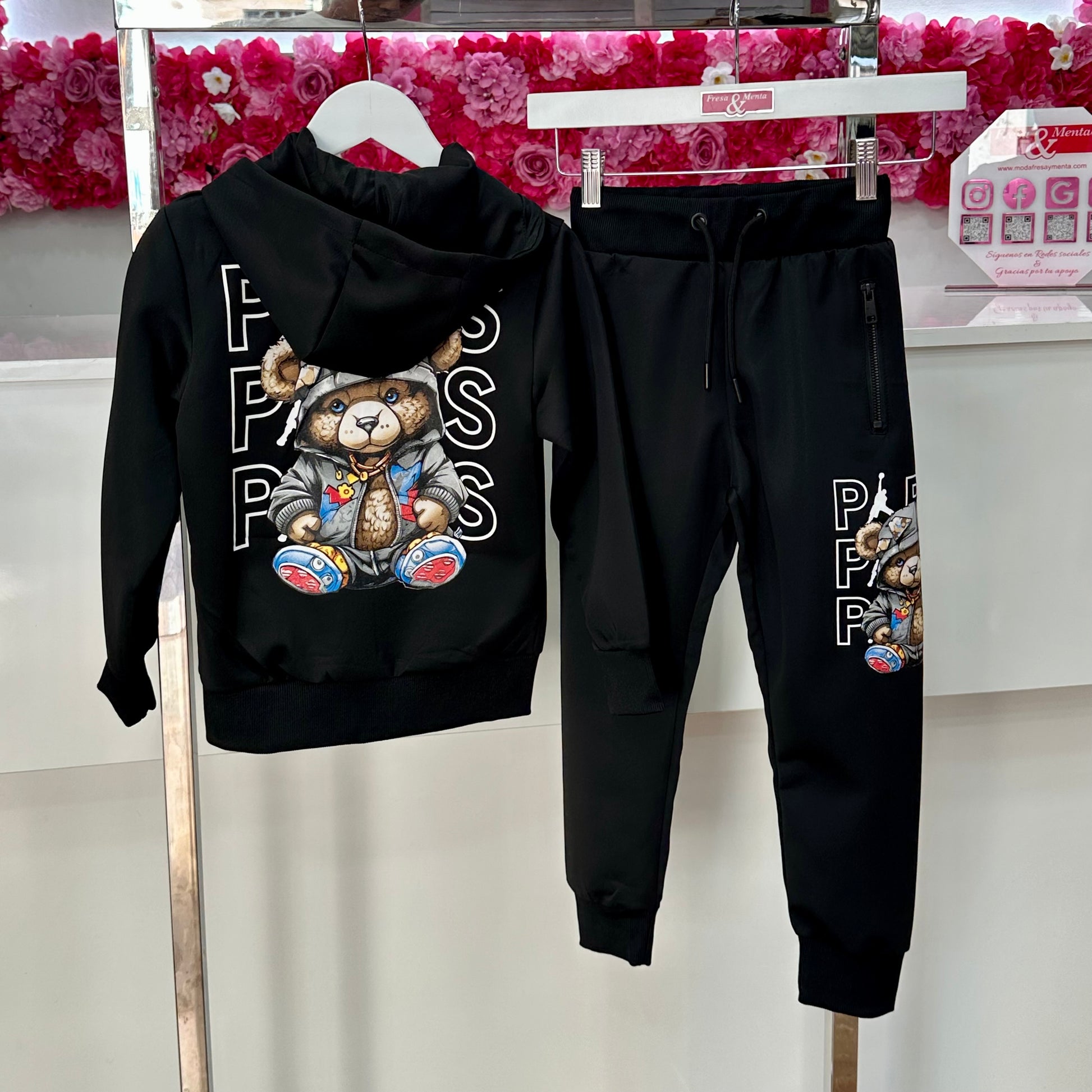 Este chándal para niños de 4 a 12 años de edad, cuenta con una chaqueta y pantalón con puños para mantener a tu hijo cómodo sin importar la actividad. Con su diseño inspirado en osos, tu hijo se sentirá a la moda mientras se mantiene activo y en movimiento. ¡Perfecto para el día a día o para hacer deporte!