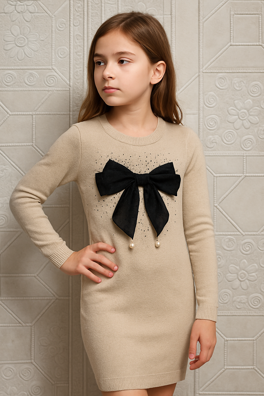 Vestido de hilo y elástico para niñas de 4 a 14 años. Cómodo y ajustado, este vestido se adapta al cuerpo en crecimiento de tu niña. Con un diseño clásico y versátil, este vestido es perfecto para cualquier ocasión. ¡Haz que tu niña luzca elegante y a la moda con este vestido!