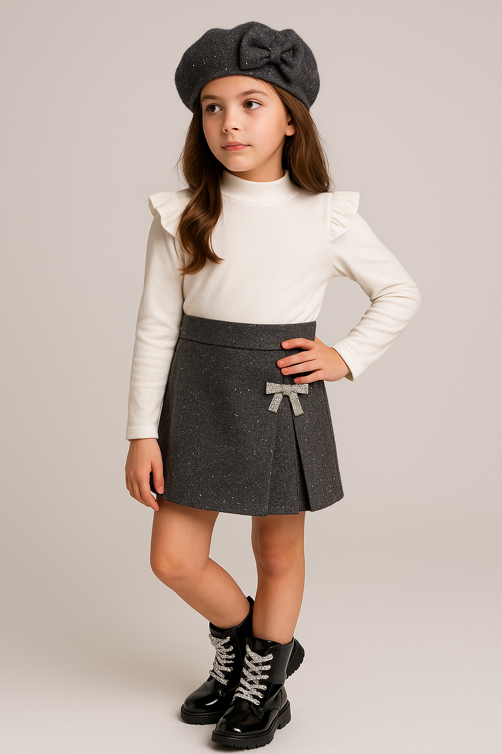 El conjunto brillo y boina es perfecto para tu niña de 12 meses a 14 años. Incluye una camiseta y falda pantalón con brillos, así como una boina a juego. Con este conjunto, tu niña lucirá elegante y a la moda mientras se mantiene cómoda y protegida del frío. ¡Un toque brillante para cualquier ocasión!