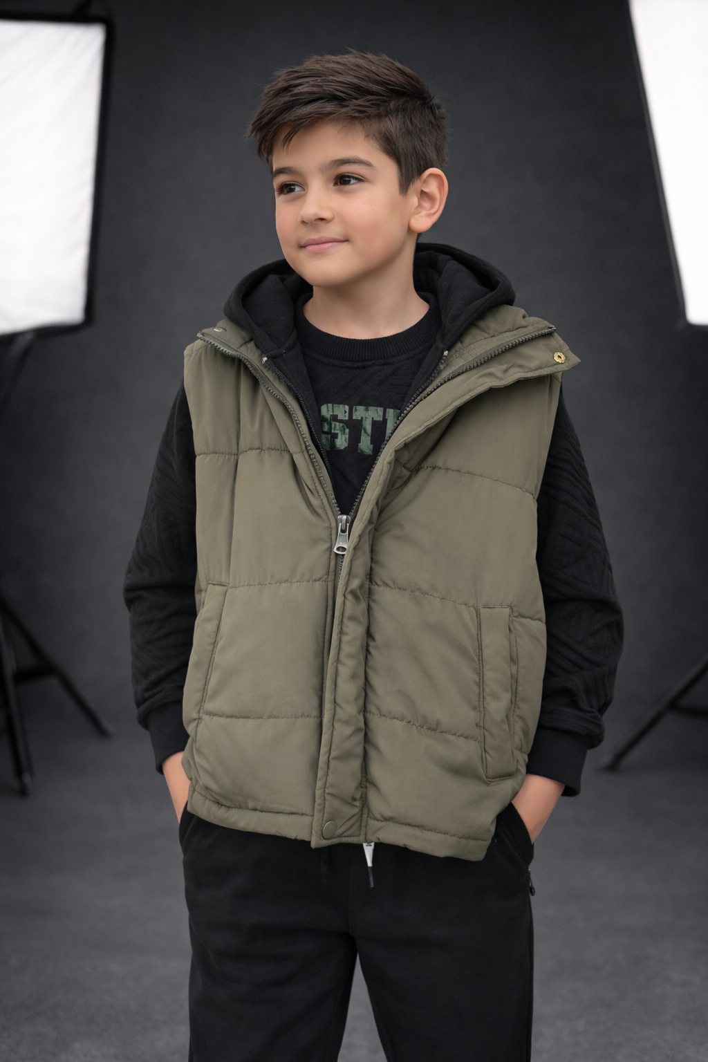 Este conjunto chaleco para niños viene en tres piezas y está disponible en tallas de 4 a 12 años. Perfecto para cualquier ocasión, este conjunto es versátil y cómodo. ¡La solución ideal para los padres que buscan estilo y practicidad para sus hijos!