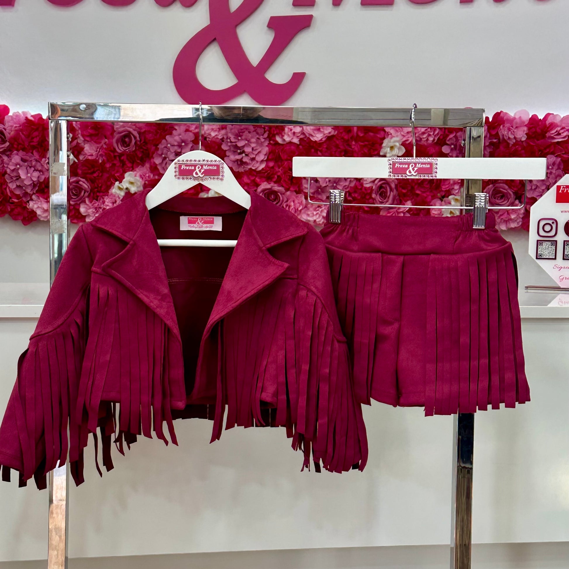 Este conjunto de chaqueta y short con flecos es el complemento perfecto para las niñas en tendencia. Con un tejido similar a la antelina, brinda un toque de estilo y sofisticación a cualquier ocasión. Disponible en tallas de 4 a 14 años, este conjunto es ideal para las más pequeñas que quieran estar a la moda. ¡No te pierdas esta oportunidad!