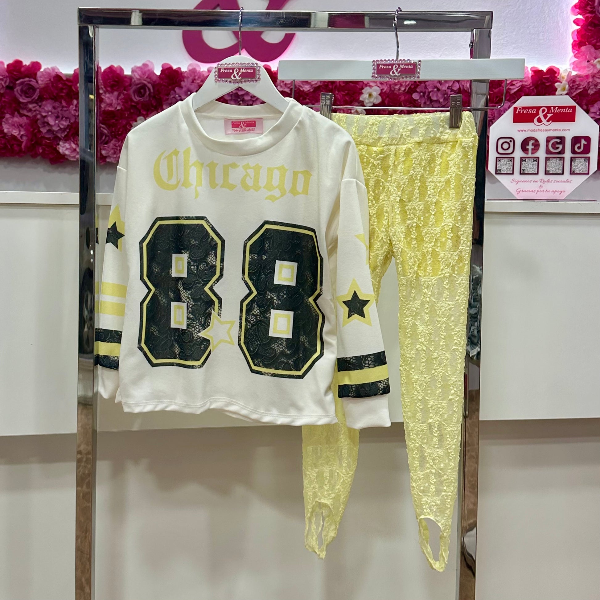 El conjunto Chicago urban incluye una camiseta oversize y una maya de encaje, diseñado para jóvenes de 4 a 14 años. Su estilo contemporáneo proporciona comodidad y libertad de movimiento, ideal para actividades diarias. La combinación de materiales asegura durabilidad, mientras que el diseño favorece la ventilación.