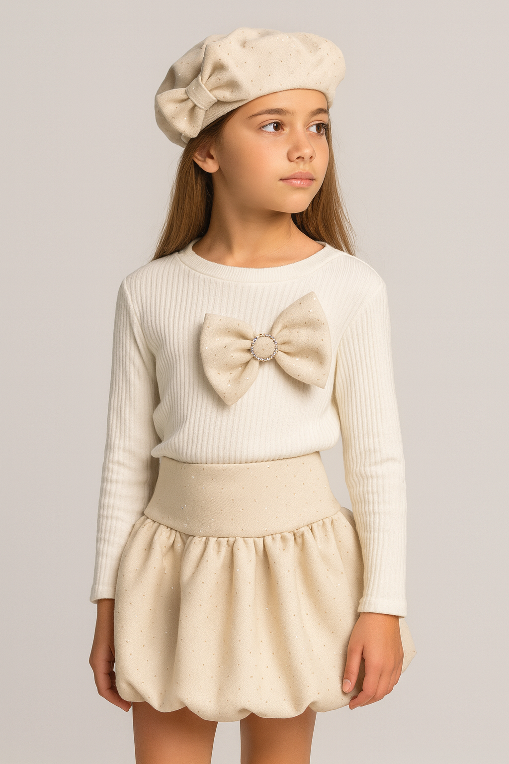 Este conjunto falda brillitos y boina es perfecto para tu pequeña de 12 meses a talla 14. Con brillantes y una boina a juego, será el atuendo ideal para cualquier ocasión. Hecho con materiales de alta calidad, tu niña se sentirá cómoda y elegante. ¡Hazla sentir como una princesa con este conjunto!