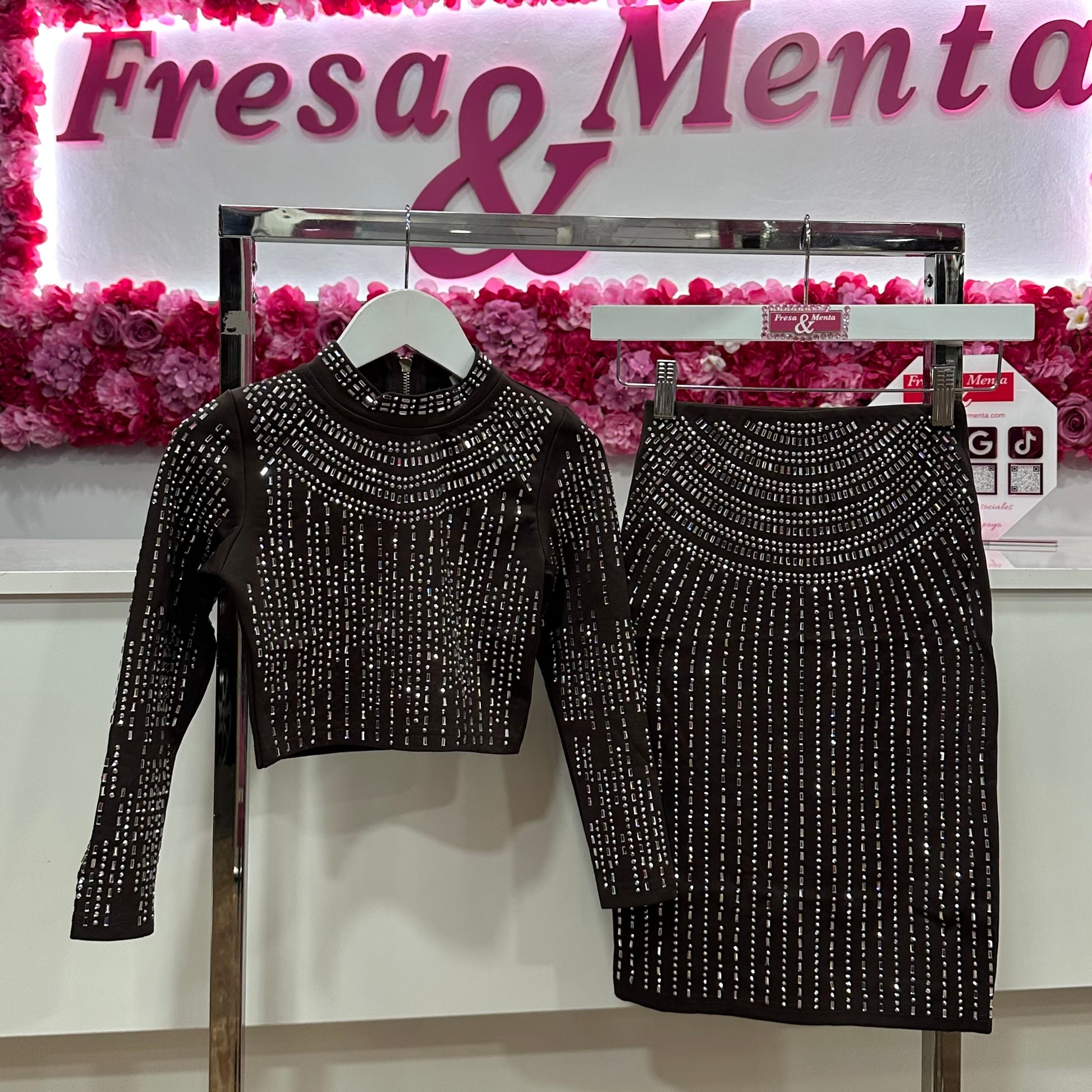 Conjunto falda pedrería