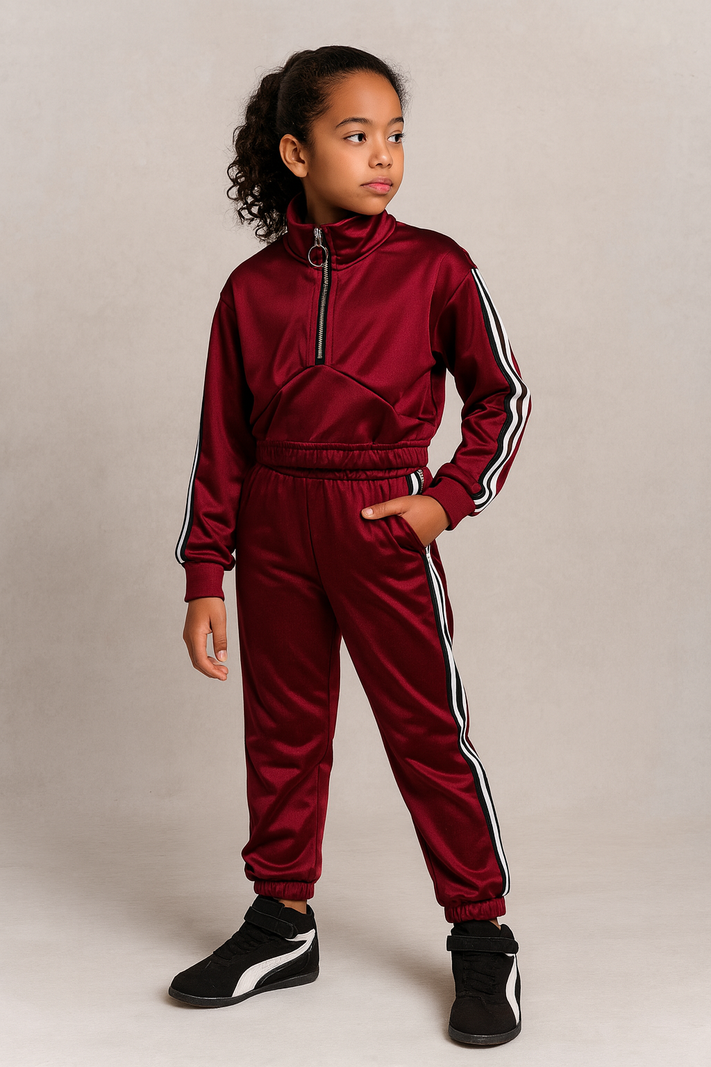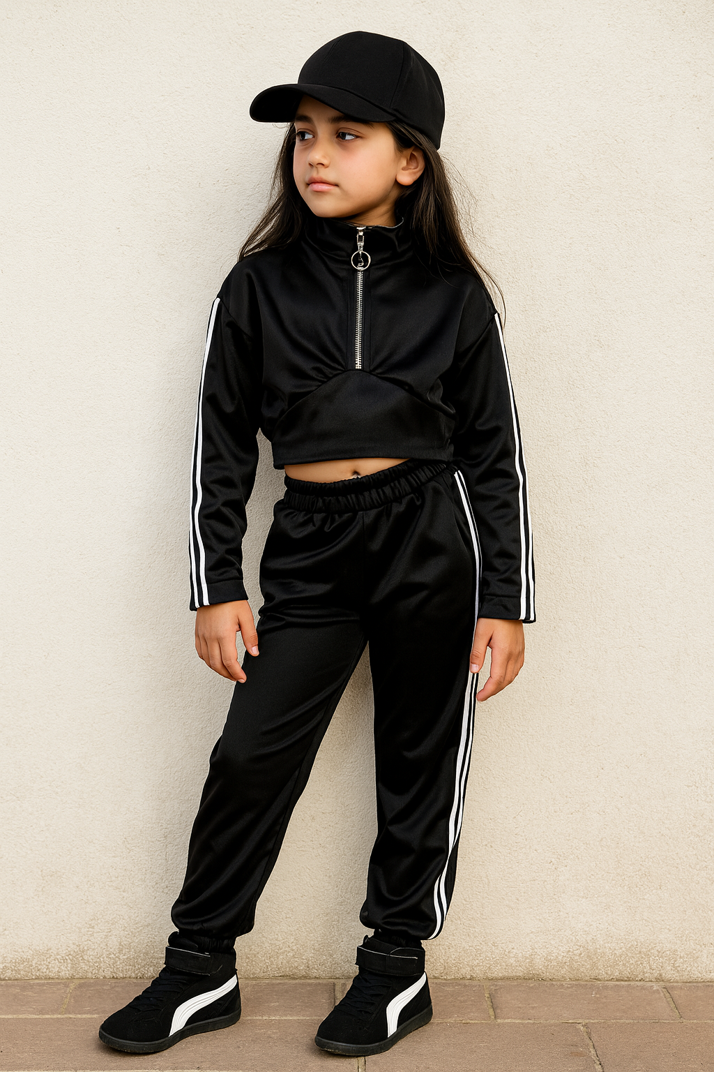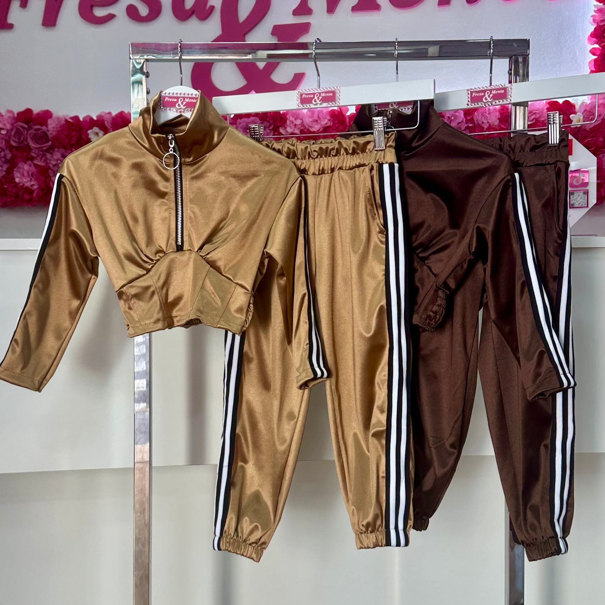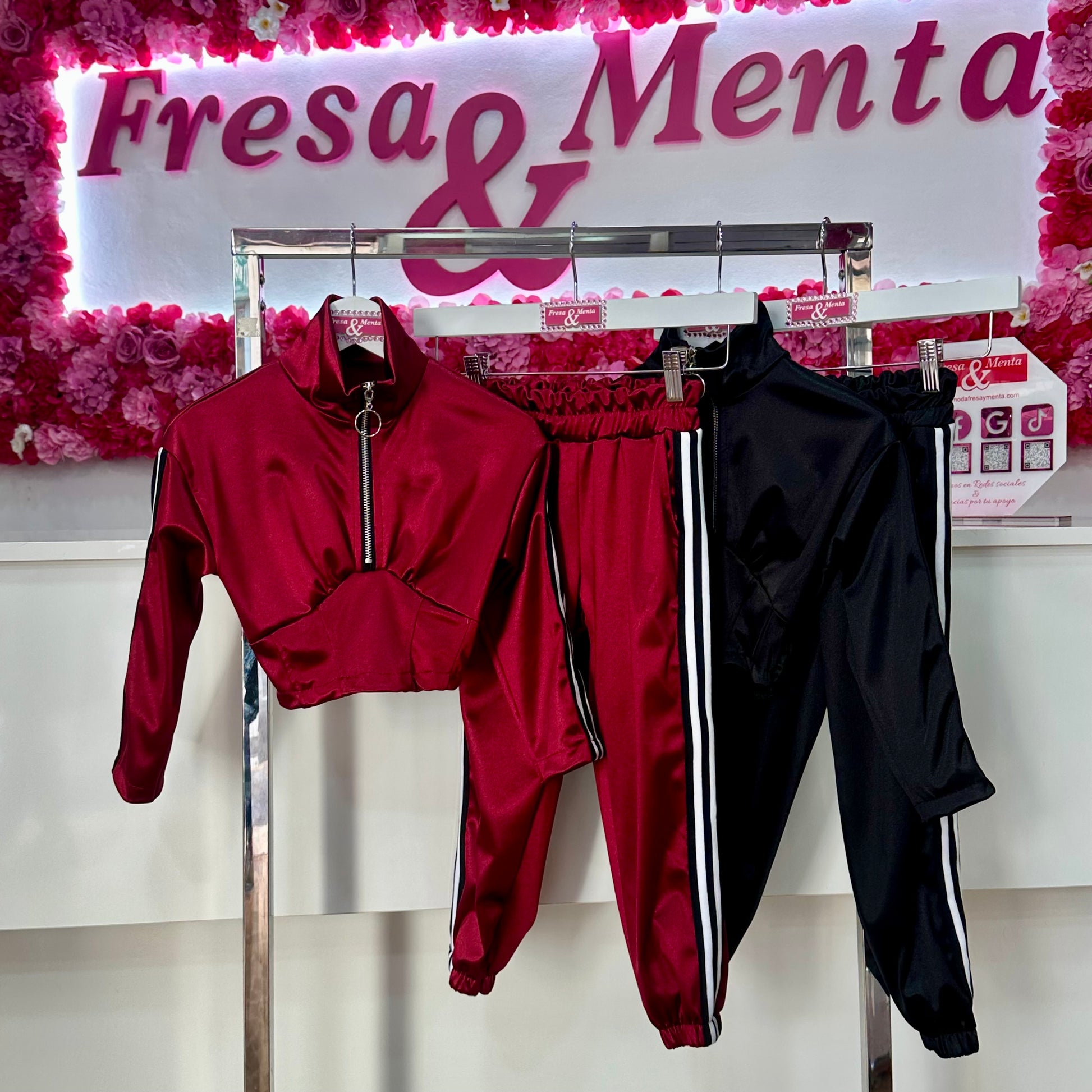 El Conjunto inspiración satén es perfecto para niñas de 4 a 14 años. La camiseta cuenta con elástico trasero y cremallera, mientras que el pantalón es de tejido satén con puño. Brinda comodidad y estilo a tu hija con este conjunto.