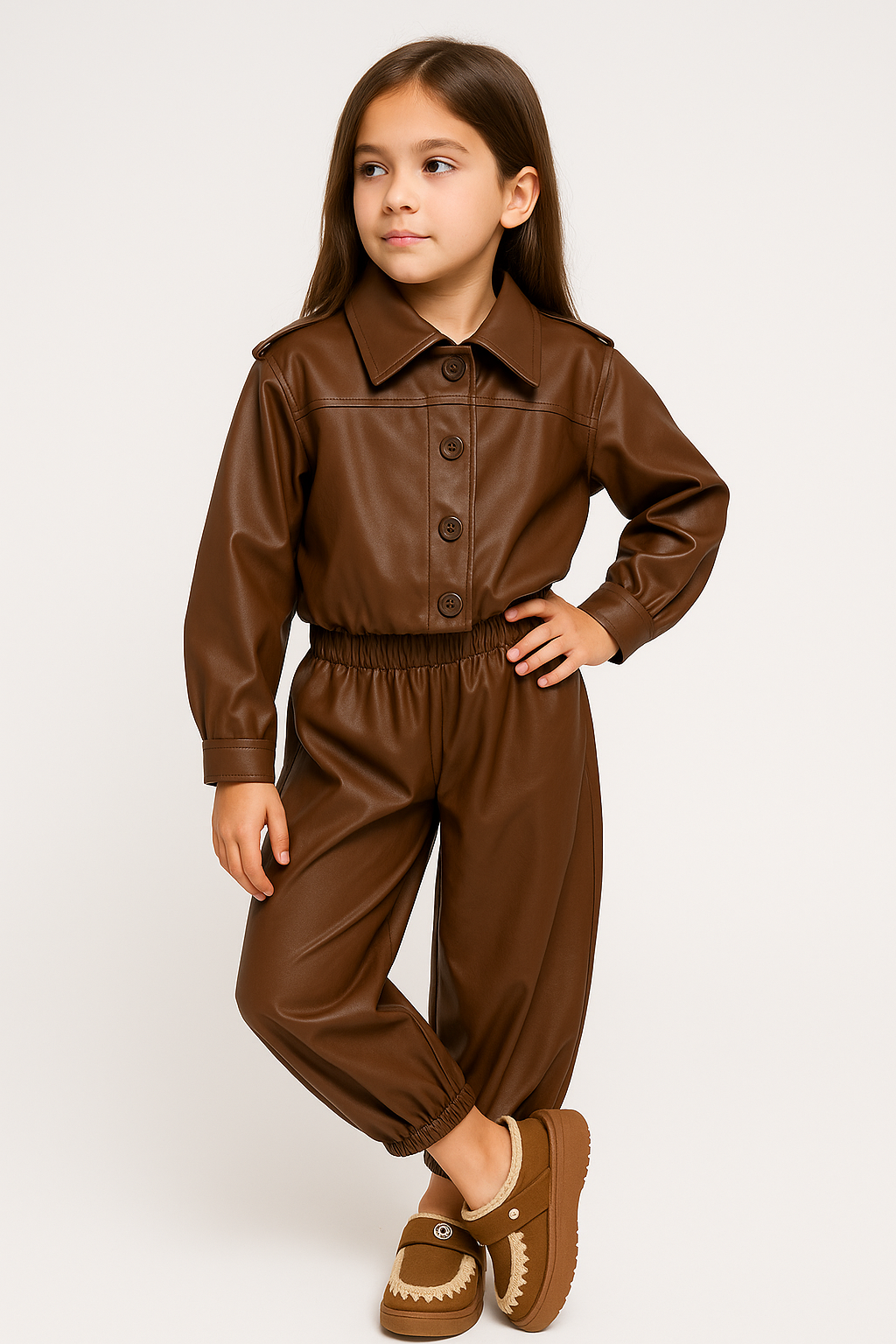 Este conjunto poli piel es perfecto para niñas de 12 meses a 14 años. La camisa es ancha y el pantalón es de estilo globo, brindando comodidad y un ajuste ideal para cualquier ocasión. Fabricado con material de alta calidad, este conjunto es duradero y fácil de limpiar. ¡Un must-have para el guardarropa de tu niña!