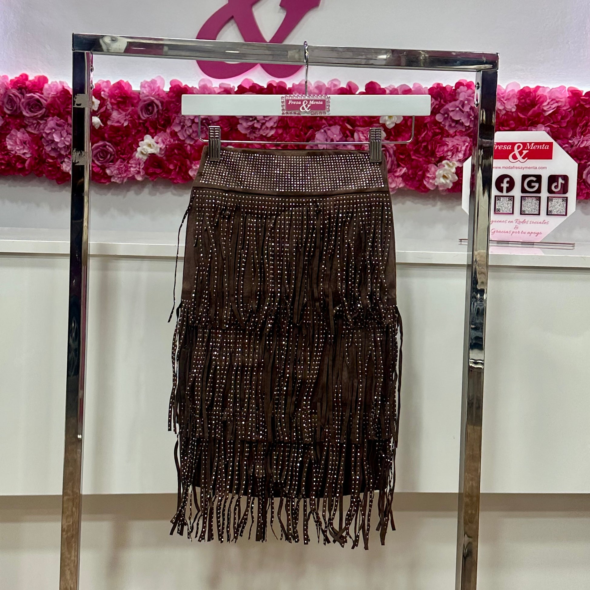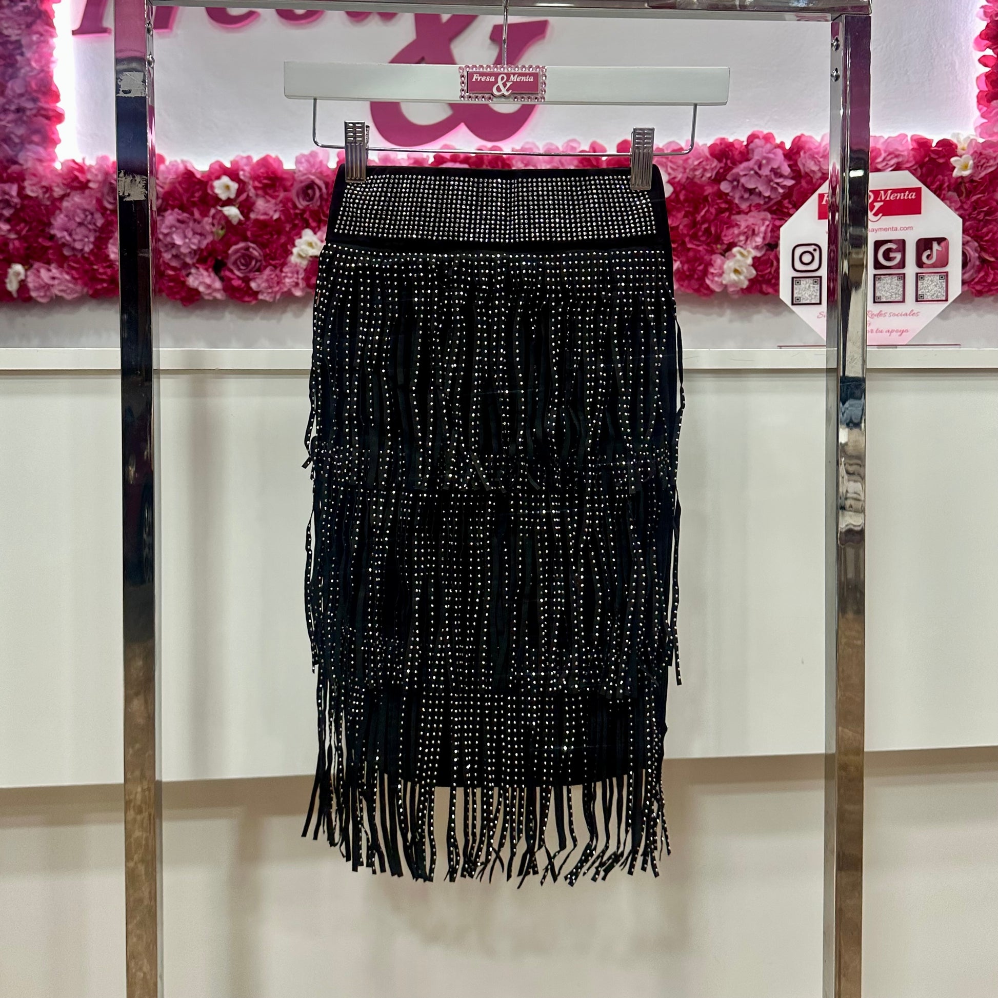 Falda flecos con pedrería