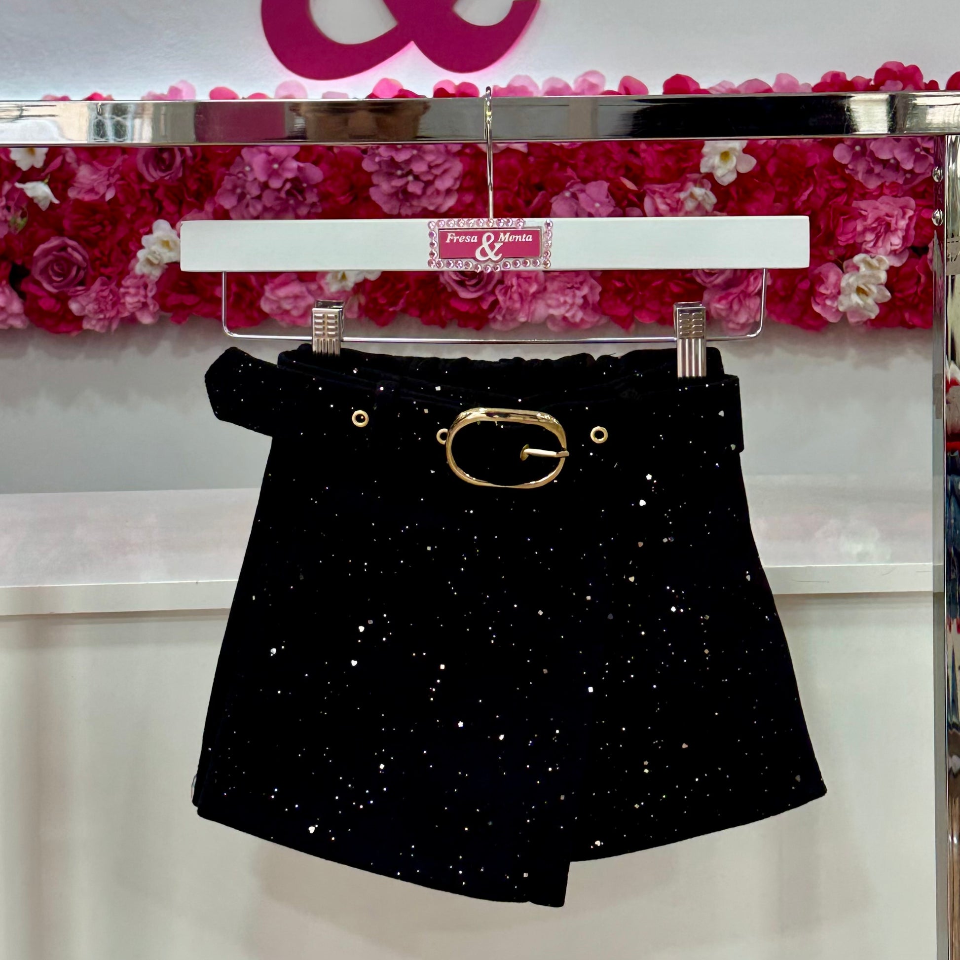 Esta falda pantalón es perfecta para niñas de 4 a 14 años. Con su brillo sutil y cinturón incorporado, esta falda no solo es atractiva sino también práctica y cómoda para las actividades diarias. Brinda un estilo elegante y juvenil a cualquier ocasión.