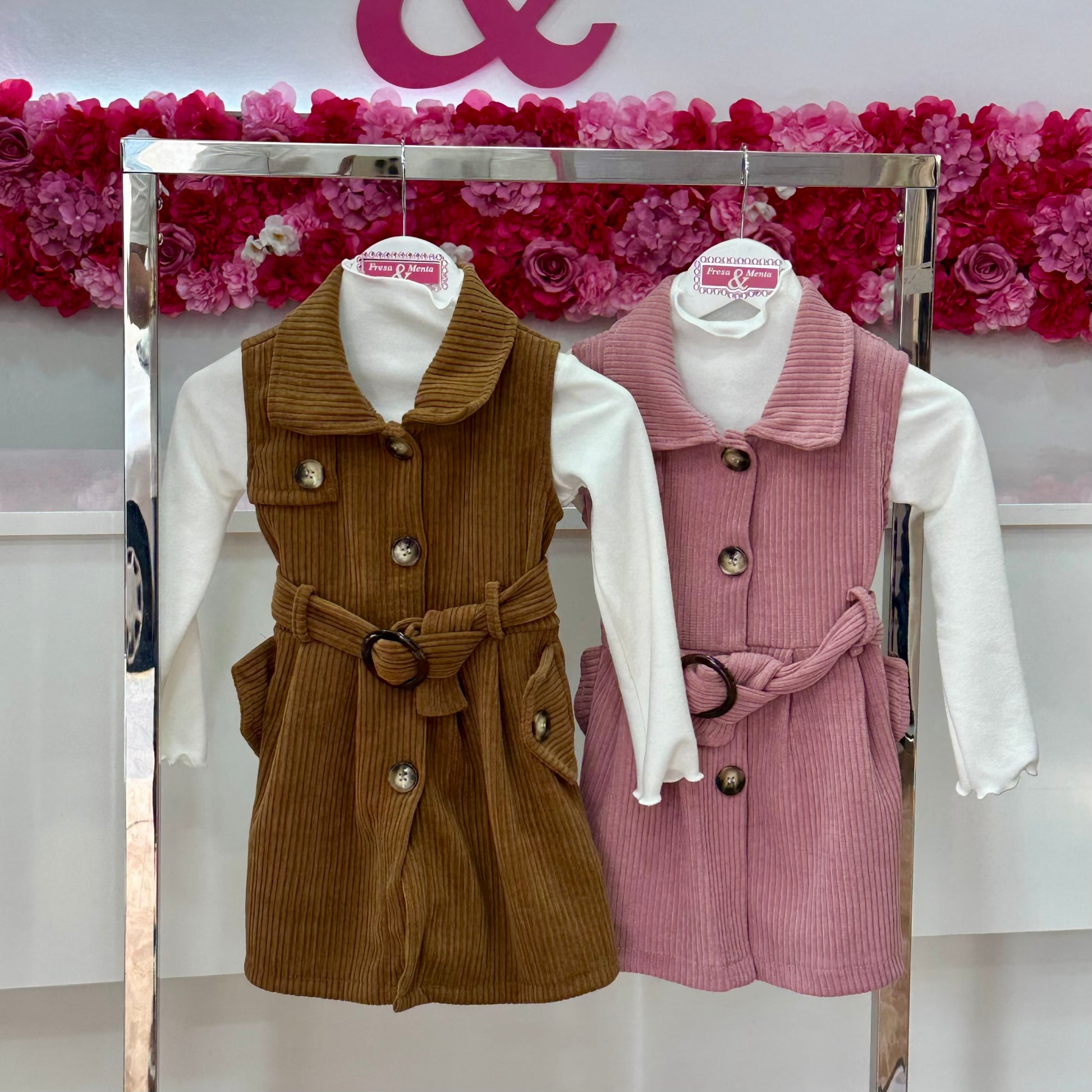 Este vestido de pana es perfecto para niñas de 2 a 12 años. Viene con una camiseta y un cinturón que le dan un toque moderno y divertido al look. Con este vestido, tu hija podrá sentirse cómoda y a la moda al mismo tiempo. ¡Hazla lucir genial con este conjunto!